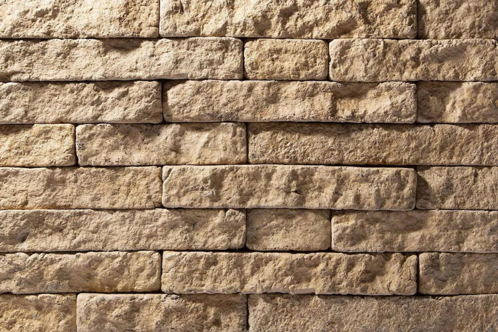A: Stones vary in depth between 3/8″ (9.5mm) to 1 ¼” (31.75mm) thick with a median thickness between 5/8″ (15.9mm) and ¾” (19mm). Surface angulation helps maintain natural texture and depth.
